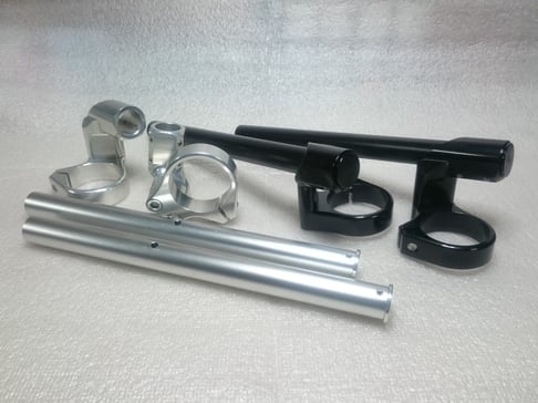 従来のセパレートハンドルに5ミリのカラーを追加することで現行車のフォークトップの突き出しに対応。